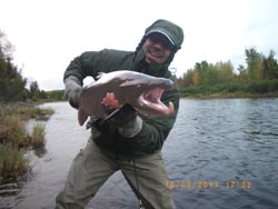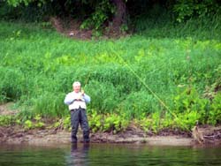 There was only one word to describe the fishing on Monday and into the evening, and that was fantastic, with all fishermen landing fish and even some local kids who had never done any summer fishing, trying it and having great luck. But throughout the night we received a very heavy rain and by Tuesday the water had risen 2 feet with much debris floating, so fishing slowed down for Tuesday and Wednesday. When fishermen did catch fish they were usually hooked close to shore on # 4 flies. Things picked up again on Thursday with some great fishing. Throughout the weekend there were few fishermen we spoke with, throughout our river runs, who were not having some excellent fishing.