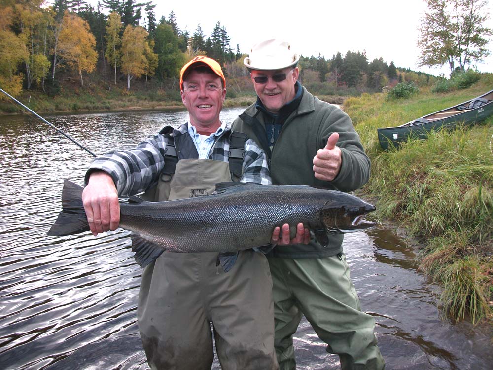 This morning Ian Parker of Scotland had 6 hookups and landed 2 on a Ally Shrimp on a pool on the Cains River and with more beginners luck, Vito Bonaiuto of Middletown Ct. landed a 20lb+ within his first hour of atlantic salmon fishing on one of our pools on the Main Miramichi - using a GP. With all the fall colors and the great fishing on the Cains river we will be doing some of our Day adventures trips on the Cains River until the end of the season.