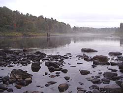 Our location on the Lower stretch of the Main Southwest Miramichi is probably one of the best locations in the entire Miramichi River System for having enough water - even in low water conditions. Although some stretches of the river and tributaries are now too low for fishing, we still have three pools that have decent fishing even when they are lower than they are right now, and another three pools that are at a perfect height for good fishing. Although many of our lower river pools are at an ideal height, the warmer weather and water we experienced over the past couple of weeks has not made for great fishing. The cooler nights have been lowering the water temperatures but when the water gets to an abnormal temperature, as was the case last week - even if the water temperature does drop it takes a rain to get things going well again.